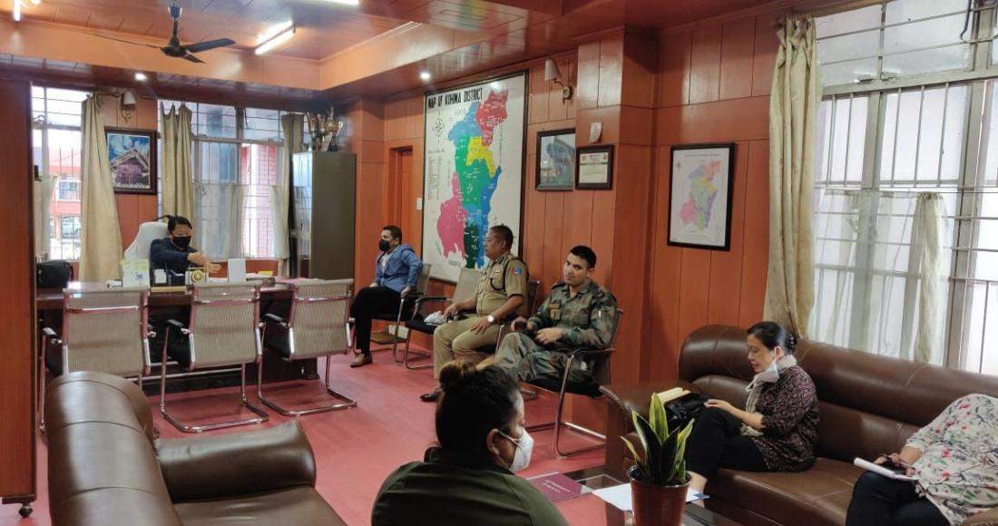 The Kohima District Task Force meeting was held under the chairmanship of Deputy Commissioner Kohima Gregory Thejawelie NCS in his office chamber on 13th July 2020. Legislators in-charge of Kohima district Minister for Housing & Mechanical (PWD), Tongpang Ozukum and Advisor for Urban Development and Municipal Affairs, Dr. Neikiesalie Nicky Kire attended the meeting