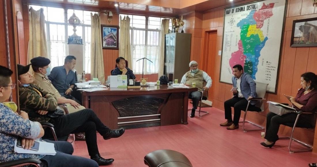 An emergency meeting of the Kohima District Task Force (DTF) led by Legislators in-charge of Kohima district, Minister Housing and Mechanical, Tongpang Ozukum and Advisor Urban Development and Municipal Affairs Dr. Nicky Kire was held at DC's Office chamber on 22nd May 2020. The meeting chaired by DC Kohima, Gregory Thejawelie NCS was convened to discuss issues on the management of Quarantine Centres of the district by the DTF as directed by the Empowered Group.