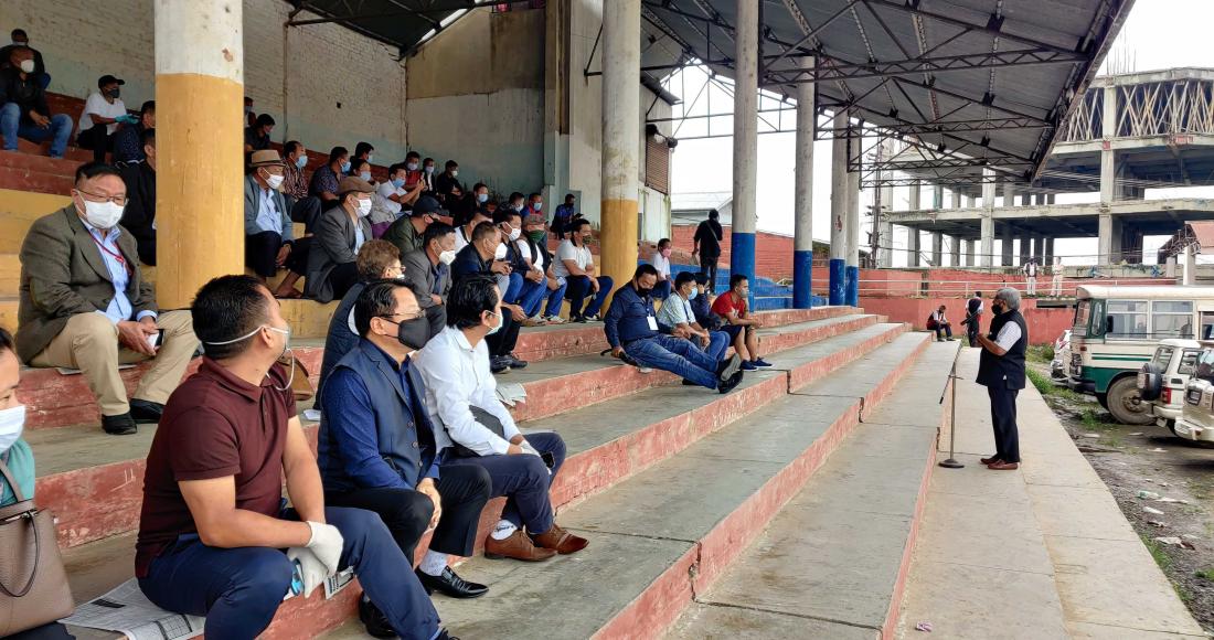 The Kohima DTF on Covid 19 held an interactive meeting with the leaders and representatives of all 19 wards under Kohima municipality on 8th August 2020 at Kohima Local Ground. The meeting was organised in order improve the co-ordination and understanding between the Kohima DTF and the community leaders so as to contain the spread of the Covid 19 virus and to handle the overall situation smoothly and more effectively. Dr. Neikiesalie Kire, Advisor Urban Development and Municipal affairs and Legislature in-charge Kohima District also attended the meeting wherein he addressed the gathering about the urgent need to practice social distancing and to promote healthier lifestyle and maintain personal hygiene. He called upon everyone present to contribute in every way possible to the fight against Covid 19.