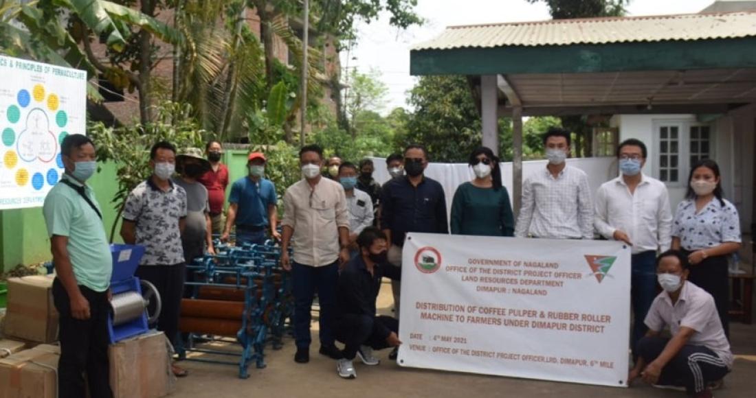 Land Resources Department, Government of Nagaland distributed rubber roller machines to 65 beneficiaries and coffee pulping machines to 25 beneficiaries ( 100%subsidy) on 4th May 2021, in the presence of special guest, ADC Dimapur, Atokhe Aye and special invitees DHO Dimapur, Temsu and DPRO Dimapur, Lolano Patton.