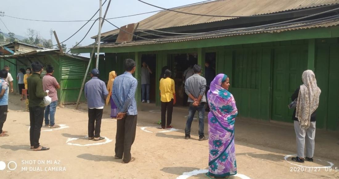 Citizens of Kiphire District standing in queue to purchase essential commodities on 27th March 2020 by maintaining Social Distancing outside the grocery shop and daily bazaar. (IA Kiphire)