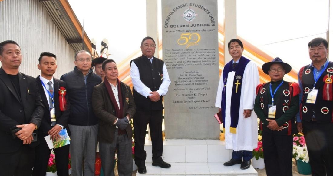 Minister for Agriculture & Co-operation, Nagaland, G. Kaito Aye unveiled the Golden Jubilee monolith of Satakha Range Students Union (SRSU) at Satakha town, Zunheboto district on 13th Jan 2021,in the presence of Deputy Commissioner, Peter Lichamo, government officers, public and student body leaders and everyone present at the inaugural programme.
