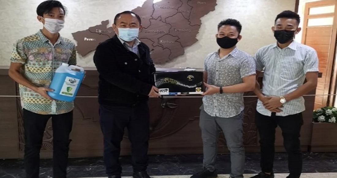 The MK Innovations donated automatic hand sanitizer machine to the Deputy Resident Commissioner, Nagaland House, New Delhi on 3rd December 2020. MK Innovations is started by two young entrepreneurs, in their twenties, from Nagaland, namely Mhaleu Metha and Kesosilie Kennao, who during the recent lockdown decided to venture into new fields as their earlier business in the hotel industry went for a toss due to the COVID pandemic.