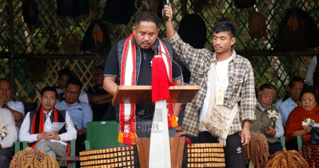 MLA, Benei M Lamthiu, addressing during the Millet festival held at Kingniu village, Noklak on 24th September 2025.(APRO. Noklak)