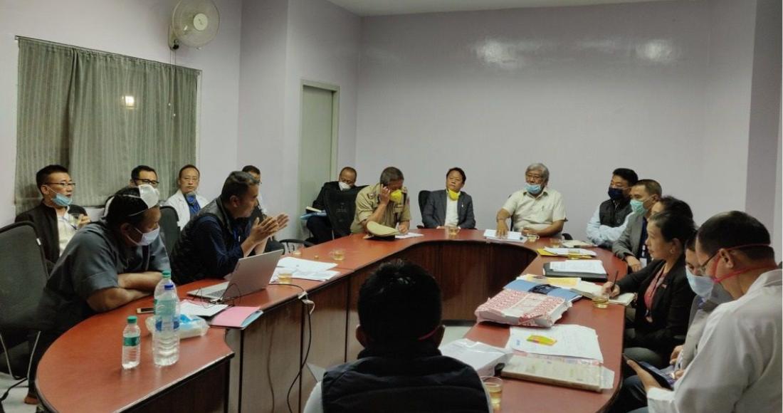 In the meeting, Dr. Thong informed that as preparatory measures the NHAK has developed an action plan of NHAK on COVID-19, where he highlighted that NHAK shall be activated to COVID-19 Treatment Center as and when 50% bed strength of Chedema is filled up with COVID positive patients for treatment. He said that all general OPDs and operation of any nature shall be suspended and only flu and related respiratory diseases shall be attended to in the designated OPD. The office of the MD and MS, EOC and Administrative establishments shall be immediately shifted to the present Obs and Gynae Ward.
