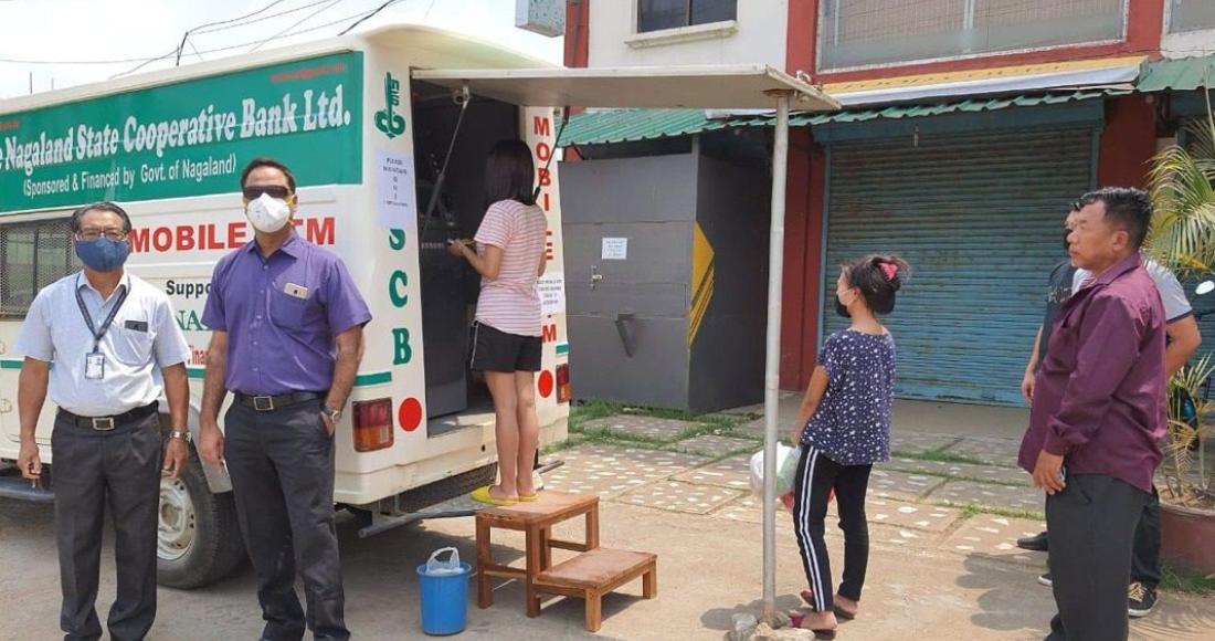 Mobile ATM being placed in the town and surrounding area reaching out to people at their doorsteps. DC Dimapur Anoop Kinchi IAS visiting one of the mobile ATMs.