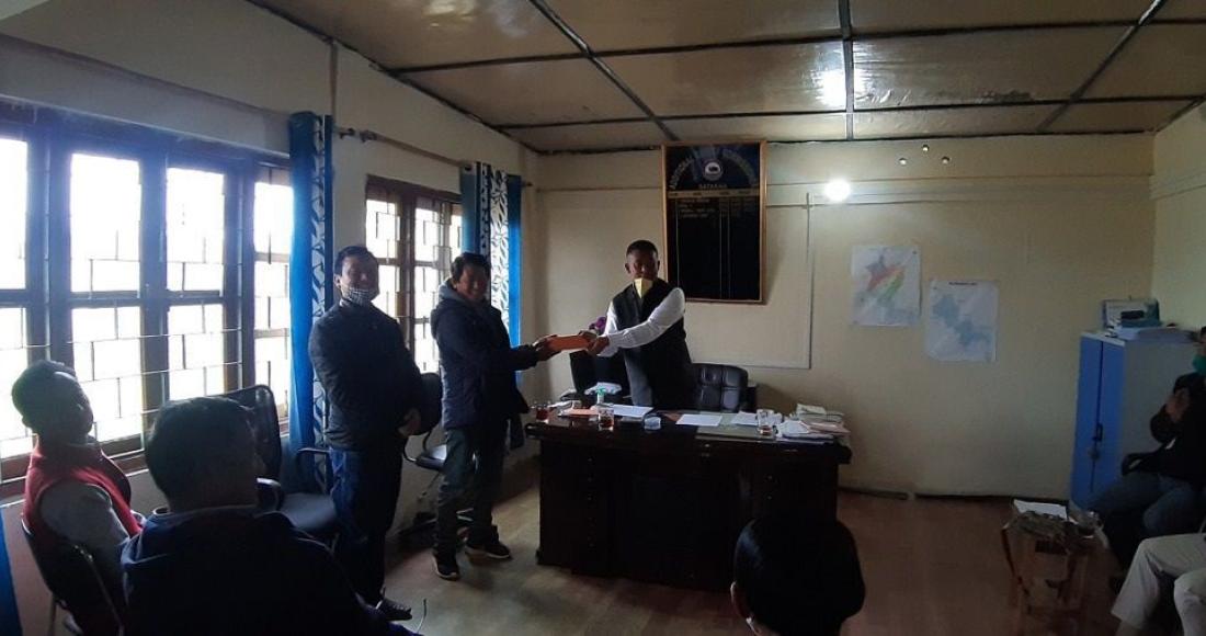 ADC Satakha receiving Rupees 50000/- (fifty thousand) from VDB Association Satakha donated towards Satakha Sub-divisional level Task force for Covid 19.