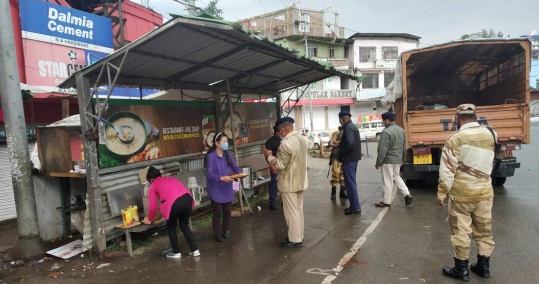 Volunteers seen here distributing tea and snacks to Police and Traffic personnel on duty at High School junction, below Census Office and Pezielietsie (Tinpatti), Kohima on 18th April 2020.