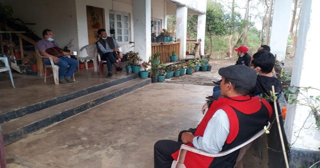 DC Peren, Sentiwapang Aier and ADC Jalukie, Dr. Tinojongshi Chang interacting with the Executives of Zeliang Students' Union, Nagaland (ZSUN) to discuss the measures to combat COVID-19 in the District on 18th April, 2020 at GA Rest House, Jalukie.
