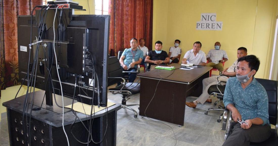 Peren District Task Force attending the Chief Secretary of Nagaland Video Conferencing on 9th April 2020 at DC Complex, District Hq. Peren NIC Room.