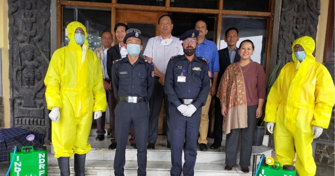 Personnel of NDRF 12th Bn E-Coy carried out disinfection drive at Raj Bhavan Complex, Kohima on 11th June 2020.