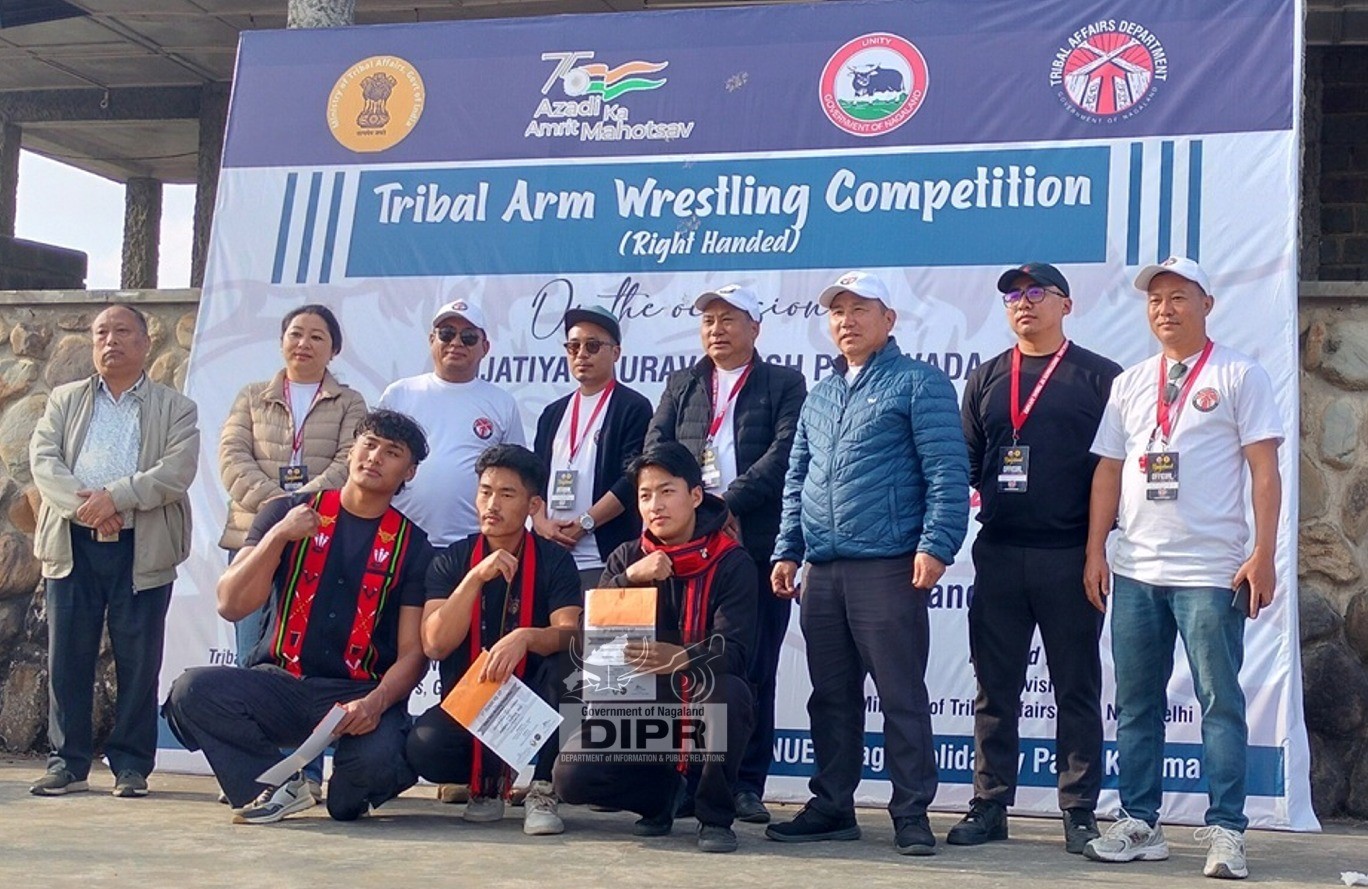 Photo News Director I. Sino Phom Felicitates Winners of Tribal Arm Wrestling Competition in Kohima Dec 03 2025
