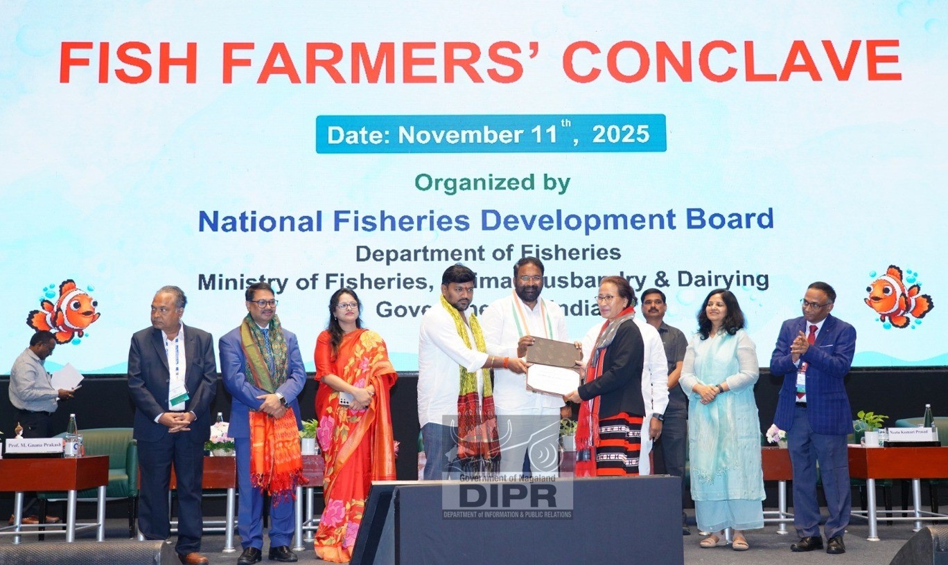 Photo News ICAISUILE FROM PEREN DISTRICT AWARDED FOR HER ROLE THROUGH FISH FARMING AT HYDERABAD Nov 14 2025