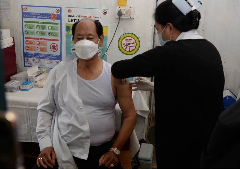 Chief Minister, Neiphiu Rio taking the second dose of the COVID-19 vaccine