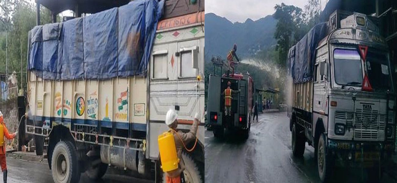 Photo News Kohima core committee for Essential Commodities sanitizing the essential commodity trucks with disinfectants Apr 22 2020