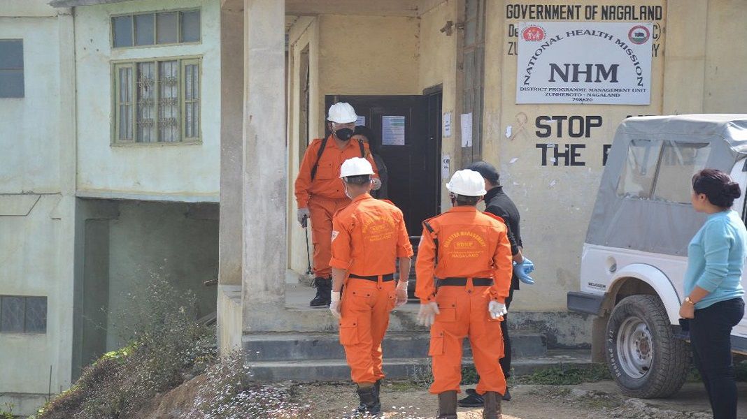 Photo News District administration, DDMA, ZTC, F&ES and SDRS personnel disinfected various locations at Zunheboto Apr 14 2020