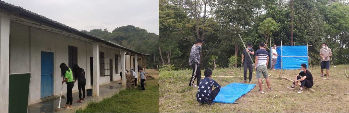Changtongya CYE helping in setting up quarantine place at GHS Changtongya B