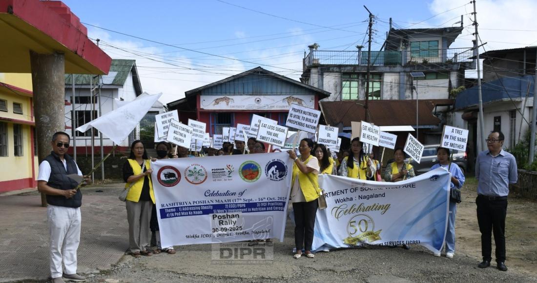 The Social Welfare Department is celebrating its 8th Rashtriya Poshan Maah 2025, from 17th September to 16th October 2025. To mark this occasion, the Office of District Programme Officer and CDPO, Wokha District, organized the Poshan Maah Rally on 30th September 2025, to promote nutrition awareness among women, children, and adolescent girls.