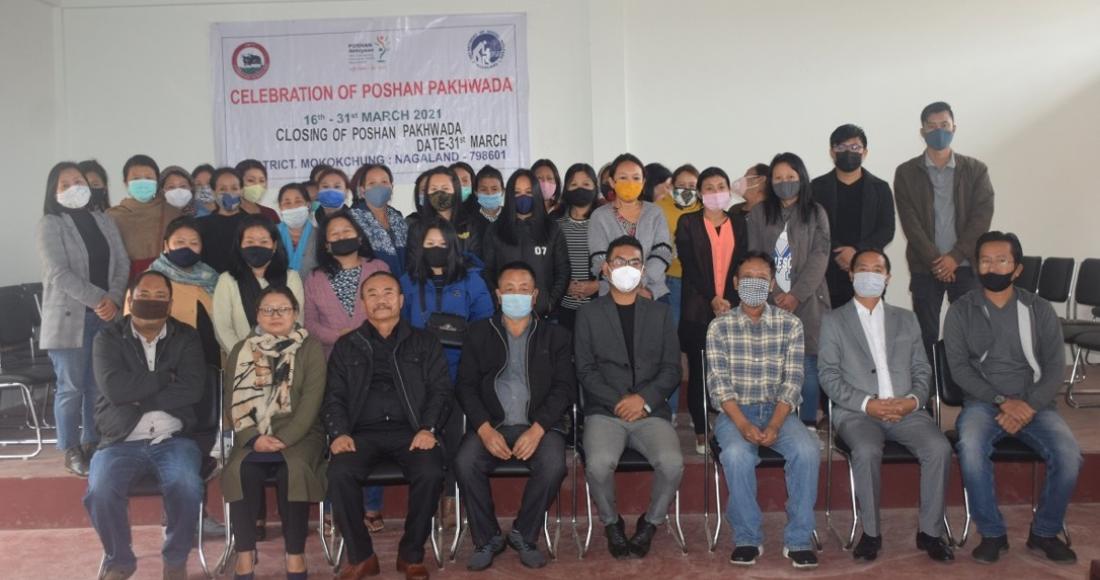 The Poshan Pakhwada celebration from 16th March 2021 to 31 March 2021, which aims to raise awareness to improve nutrition index of women and children across the country, was successfully carried out in Mokokchung district with the initiatives of the Social Welfare Department. The closing programme of the nutrition fortnight event was held at Sangtemla Ward, Multi-Purpose Hall, Mokokchung, on 31st March2021.
