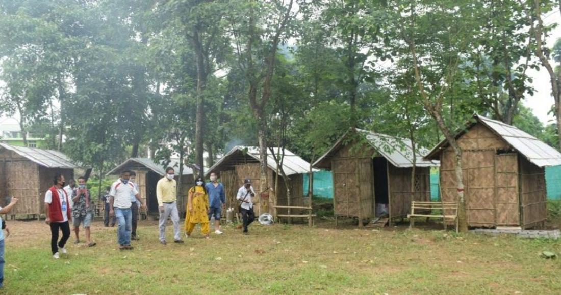 Visiting the ongoing construction of Quarantine Centre located near LBCD on 11th June 2020, Anoop said he was impressed with the Quarantine huts  measuring 10 by 8 which has a Naga traditional touch, proper electrification, stand fans in each hut, and full floor carpeting of the huts. DC further observed that a kind of bench made of Bamboo and placed outside each hut and the airy and spacious ambience with a separate toilet and bathroom for each quarantine which has been set in place would be the perfect and comfortable home for the inmates.  He even suggested that later on, the huts could be utilised for the visiting tourists for income generation as well as promoting rural tourism.