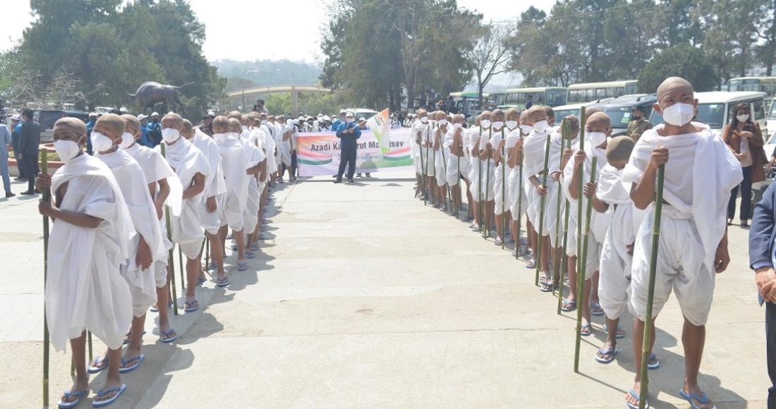 School Children depicting Dandi March during the launching of 75 years of India's Independence at Secretariat Plaza, Kohima on 12th March 2021. (DIPR)