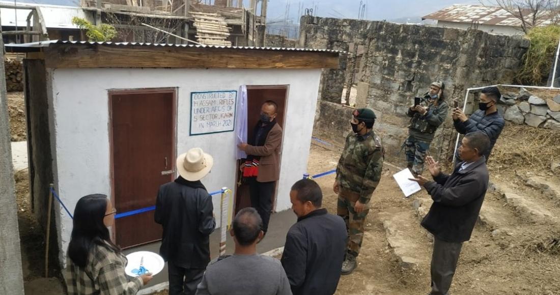 SDO(C), Chizami Vekuto Vero, inaugurating public toilet at Razeba Town Local Ground, constructed by 14th AR, Phek under the aegis of 5th Sector IGARN on 15th March 2021.