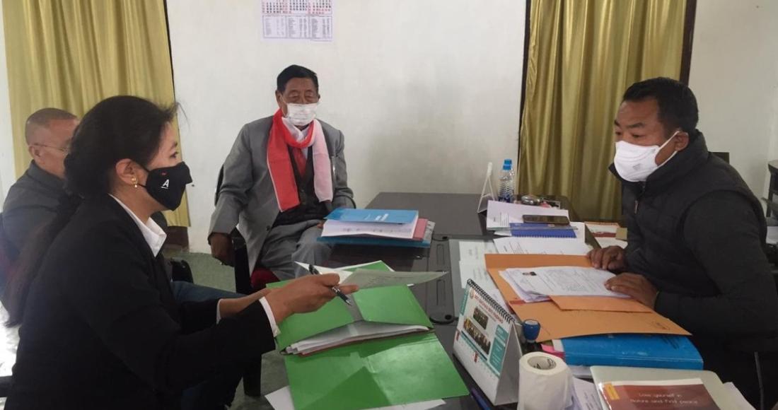 SDO (C) Noksen and RO, Tsiatsusie verifying the nomination paper of NDPP and PDA consensus candidate, H. Chuba Chang for the bye election to 51 A/C Noksen on 30th of March 2021. (DPRO Tuensang)