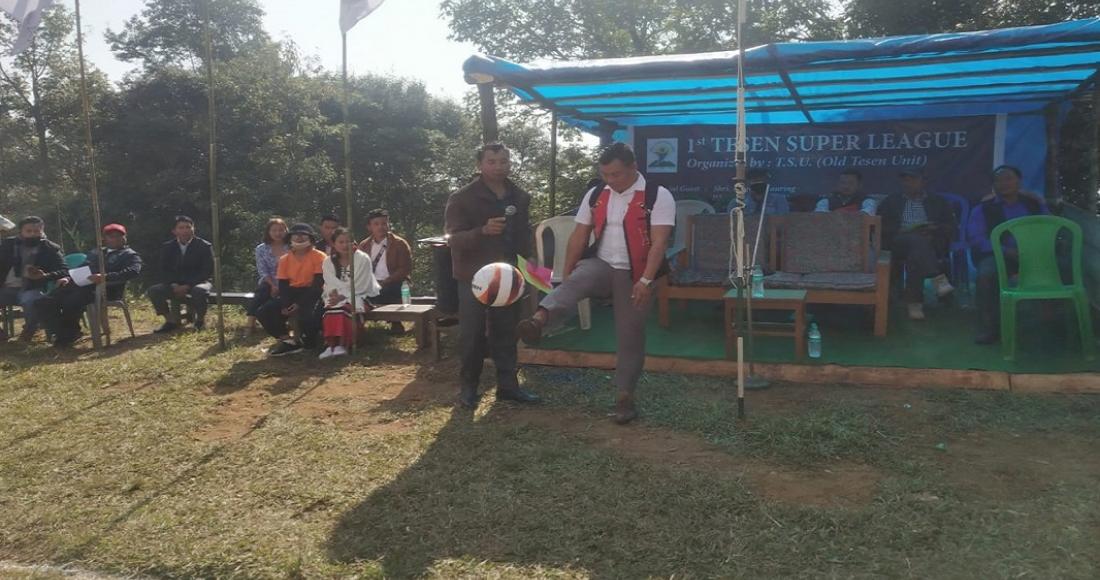 Iteigong Kauring PS to Namri Nchang, Advisor of Water Resource Department kicked off the first Tesen Super League football tournament organised by TSU Old Tesen Unit on 9th December 2020.