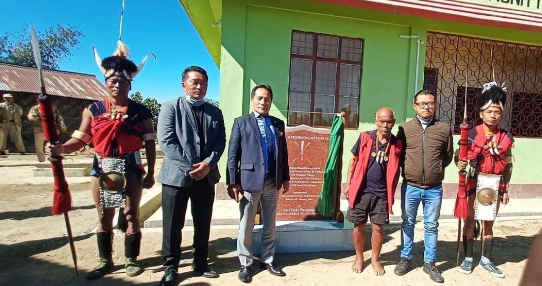 Advisor, I&PR, SCERT, Village Guards, Toshi Wungtung unveiled the monolith of 75th Anniversary of K. Lakiumong Hd on 28 January 2021 at Council Hall, Sangphur Village.