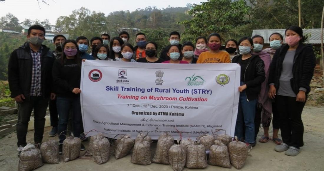 ATMA Kohima district conducted training programme on Oyster Mushroom Cultivation through Paddy Straw under Skill Training for Rural Youth (STRY) Scheme under the Sub-Mission on Agriculture Extension (SMAE) of National Mission on Agricultural Extension Technology (NMAET) of Ministry of Agriculture and Famer’s Welfare, Government of India from 7th -12th December 2020 at Perizie Colony, Kohima.