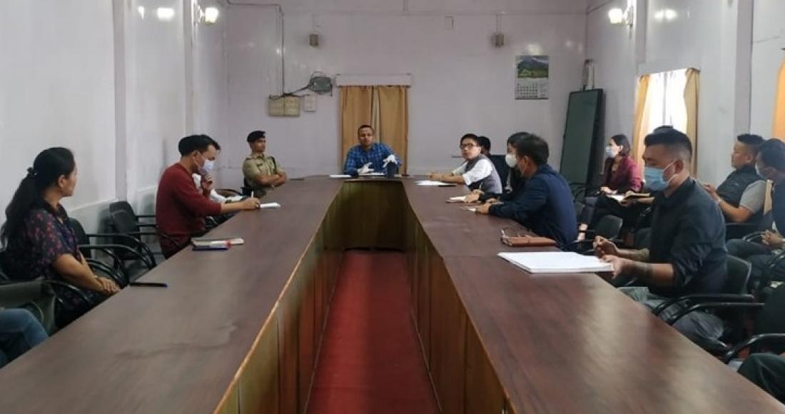 The meeting of the Tuensang District Task Force (DTF) for COVID-19 was held on 8th July 2020 in the Deputy Commissioner's Conference Hall. The meeting was chaired by Deputy Commissioner, Tuensang, Kumar Ramnikant IAS, who briefed the house on the BSL-2 laboratory which is currently being set up at the COVID-19 Hospital, Tuensang. The Deputy Commissioner apprised the House on the need to hasten the completion of the BSL-2 laboratory. The House deliberated on the issue of 1 (one) BSL - 2 Laboratory technician who was tested positive for COVID-19 on 7th July 2020. The technician is currently admitted to COVID CARE CENTRE, Tuensang for isolation and all his contacts have been quarantine and further test are ongoing.