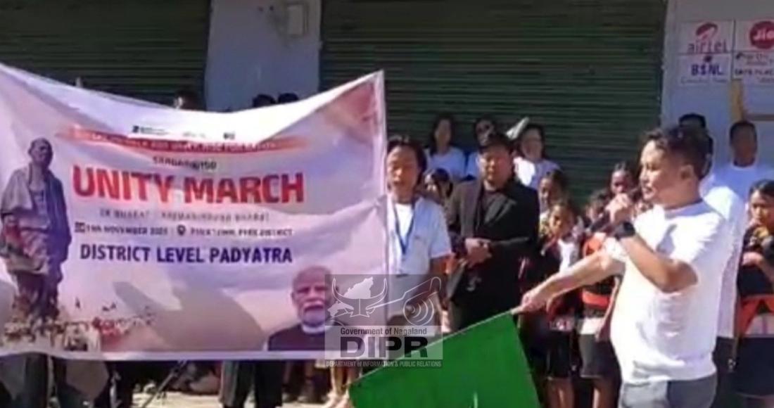 Sardar@150th Unity March (Patyatra- II) was held at Phek on 19th November 2025 with Chetezo Akami, Deputy Chairperson, Phek Town Council as special guest. The Special Guest flagged off the sardar@unity march (Patyatra- II) at DC's office junction in the presence of Govt employees, Students, Colony/Ward leaders and general public.
