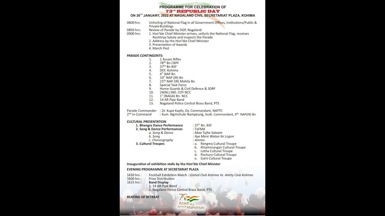 Video News 73rd Republic Day on 26th January, 2022 at Nagaland Civil Secretariat Plaza, Kohima Jan 26 2022