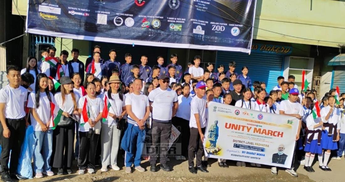 My Bharat Wokha, in coordination with the Wokha District Administration, organized a district-level Padyatra to mark the 150th birth anniversary of Sardar Vallabhbhai Patel, the Iron Man of India. The Unity March, aimed at promoting communal harmony and reflecting on Patel’s legacy, began at 7:00 AM from Police Point and concluded at Mount Tiyi College.